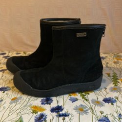 Använda men hela och fina. Fluffigt varmt skinnfoder invändigt. Storlek 41, invändigt ca 26 cm.