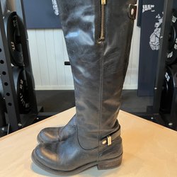 Ett par svarta stövlar med dragkedja och spännen. Perfekt för alla tillfällen.