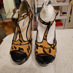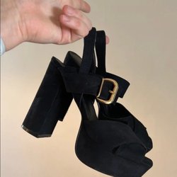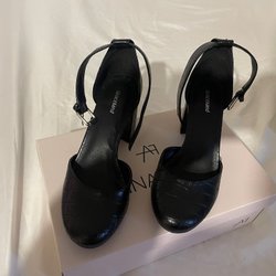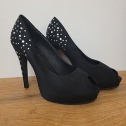 Svarta klackskor i storlek 37 med en dragkedja baktill och snörning framtill. Klackhöjd ca 10cm. Använda 1 gång.