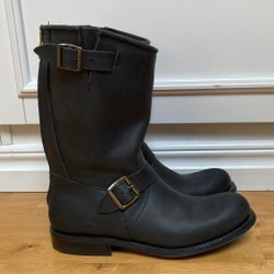 Ett par svarta skinnstövlar av märket Primeboots. Dragkedja på sidan och spännen. Medföljer tygpåse dock ingen skokartong.