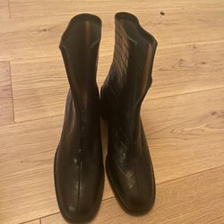Ett par svarta stövletter med ca 9cm hög klack. Perfekt för hösten och vintern, till festen högblanka supersnygga stövletter stl 39. Endast testade.