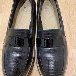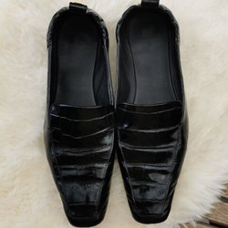 Snygga svarta loafers i krokodilskinnsmönster. Perfekta för både vardag och fest.