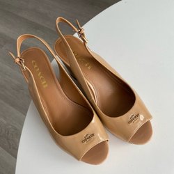 Ett par bruna sandaler med pärldetaljer från Shein storlek 40 men passar mig som har 38/39