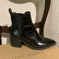 Eleganta svarta stövletter i äkta skinn. Storlek 39 Stövletterna har en dragkedja på sidan , något svängd klack höjd 7,5 cm, resår på sidan så mycket bekväma. Använda men fortfarande i fint skick.