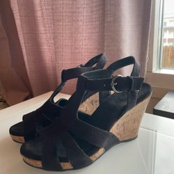 Oanvända kilklackar i strl 39. Normala i strl. Fån DonDonna. Kilklacken är som högst 8,5 cm. Kommer från rök och djurfritthem.