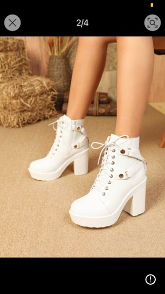 Ett par vita boots med snörning och hög klack. Perfekt för en utekväll eller en dag på stan.