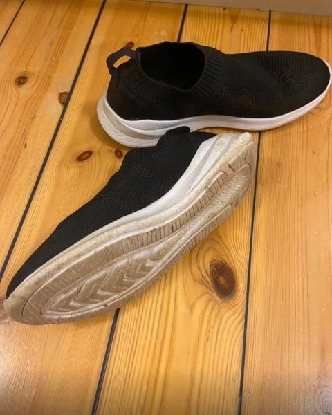 Bekväma svarta sneakers med vit sula.