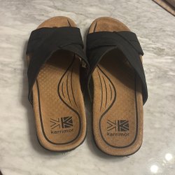Ett par svarta sandaler med två breda remmar. Perfekt för sommaren!