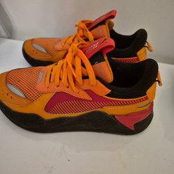 Ett par svarta pumps från Zara Basic med spetsig tå och en unik klack. Klacken har en intressant geometrisk form och en metallisk detalj som ger skorna en modern touch. Skorna är i gott skick och passar perfekt för både vardag och fest.