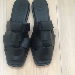 Ett par svarta tofflor med mjuk ovandel. Perfekta för avkoppling hemma. 41 storlek
