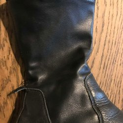 Svarta stövlar med dragkedja på insidan. Stövlarna har en blockklack och en spetsig tå.