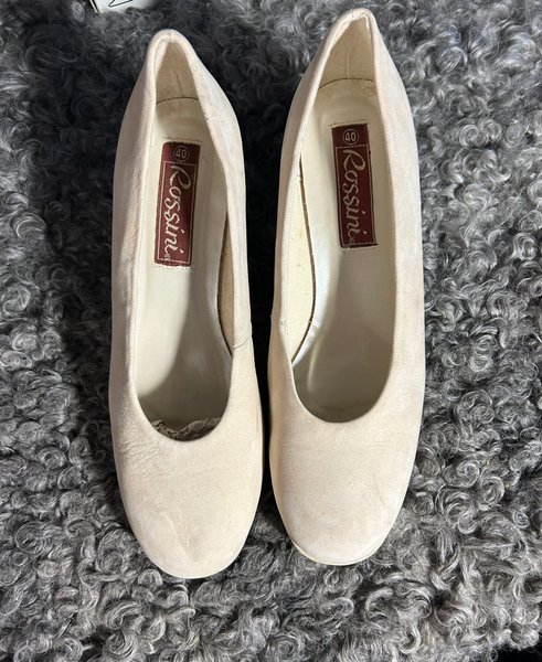 pumps storl 40 .Klackhöjd 7 cm. Märke Rossini. Färg ljus camel. Skick som nya, ser oanvända ut, Använda en gång på ett bröllop tydligen. Klassisk design med rundad tå, elegant både till vardag och fest .