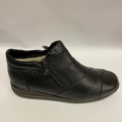 Promenadskor från Rieker i skinn med en bredare läst för dig som behöver det. Resår vid sidan som gör det lättare att komma i och ur. Skorna är vattenavvisande och yttersulan är skön och bekväm att gå med.
