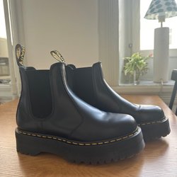 Zara designer collaboration -svarta boots. Skorna har resårpaneler på sidorna för enkel på- och avtagning. De har en klassisk design som passar bra till olika tillfällen. Läder med gummi sula