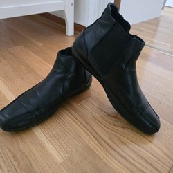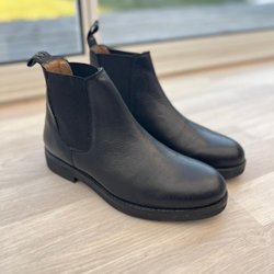 Svarta Chelsea boots, resårpaneler på sidorna för enkel på- och avtagning. De har en klassisk design som passar bra till olika tillfällen. Läder med gummi sula