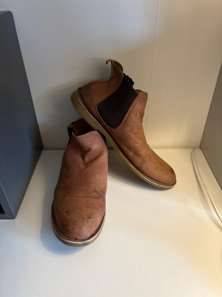 Ett par bruna kängor med resår i sidorna för enkel på- och avtagning. Skorna har en robust sula och en klassisk design som passar för många tillfällen.