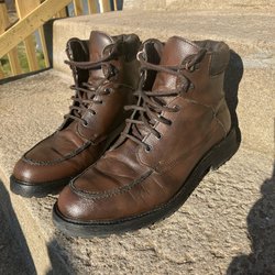 Tuffa kängor i senapsgul färg med snörning.
