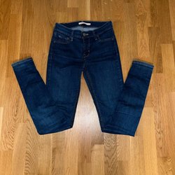 Mörkblåa Levis 710 super skinny high waist strl 26”/30” i jättefint skick.