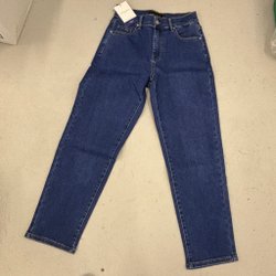 Mörkblå dam jeans med hög midja och knappgylf har även bakfickor. Storleken är XXL/44. Jeansen har en smal passform och är super stretchiga. Helt nya !!