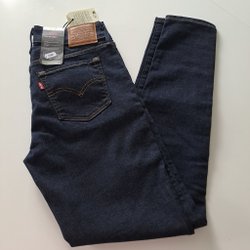 Mörkblå jeans med hög midja och resår i midjan med bakfickor. Jeansen har en smal passform och detaljerade sömmar och är mycket stretchiga. Storleken på dem är 16L/44L . Helt nya !!