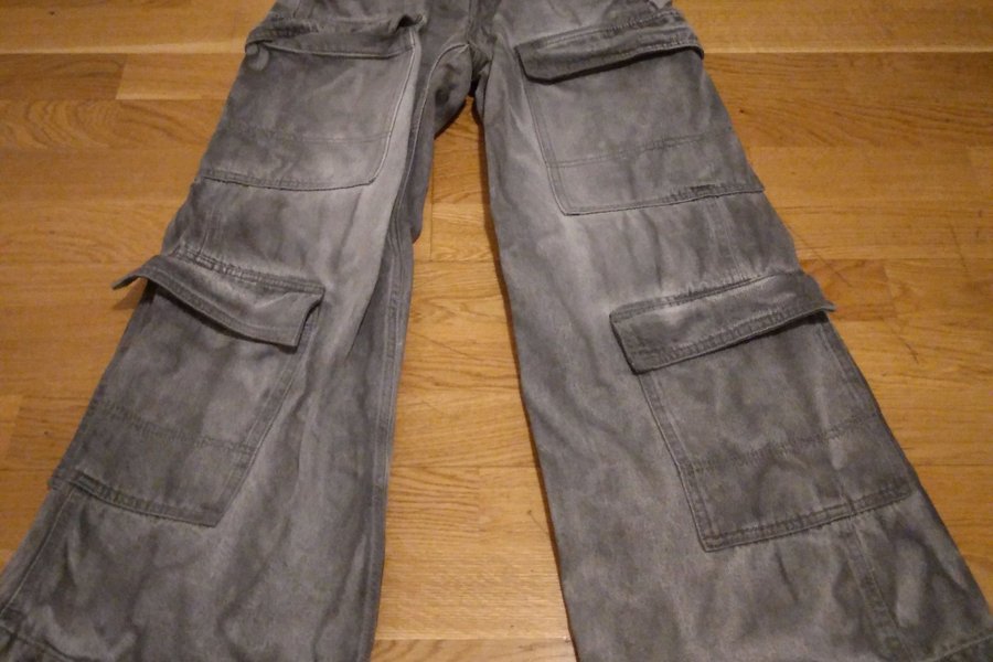 Jeans byxor par gråa med stora fickor på benen. Byxorna har en avslappnad passform. Storlek 32 knappt advänd