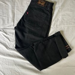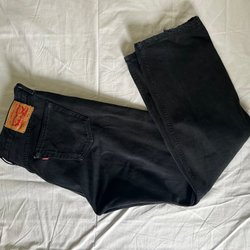 Ett par vinröda manchesterbyxor med raka ben och klassisk design. Byxorna har fickor bak och fram, samt en liten Levi’s-logotyp på baksidan. W34 L30