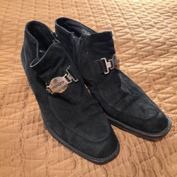 Ett par mörkblå jeans från Hugo Boss. Jeansen har klassisk design med fickor bak och fram, samt en liten metallplatta med logotyp på ena framfickan. På baksidan finns en läderpatch med en metallplatta med Hugo Boss logotyp.