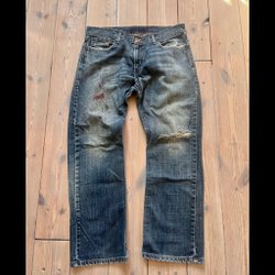 Loose fit! Super nice fade and distressed through out the denim.