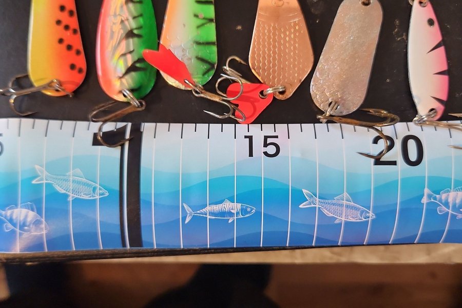 Olika fiskedrag i varierande färger och mönster. Passar för olika typer av fiske. Se bilder för detaljer.