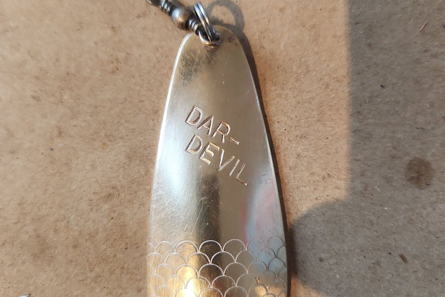 Det officiella produktnamnet och varumärket är dock Dardevle, skrivet som ett enda ord. Den unika stavningen (med "e" istället för "i" i slutet) valdes av tillverkaren Lou Eppinger på 1920-talet för att undvika att stöta sig med religiösa personer som kunde bli kränkta av ordet "devil" (djävul) i tryck.