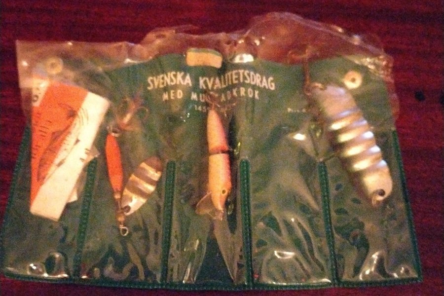 Set med flera olika drag för fiske. Innehåller en variation av färger och former. Passar för olika fiskemetoder.