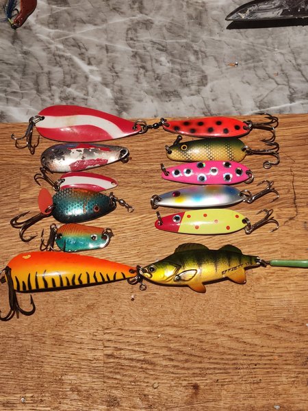 Blandade fiskedrag i olika färger och modeller. Passar för olika typer av fiske. Se bilder för detaljer.
