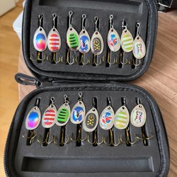 Set med sex fiskedrag i olika färger och mönster främst för regnbåge. Passar både nybörjare och erfarna fiskare.