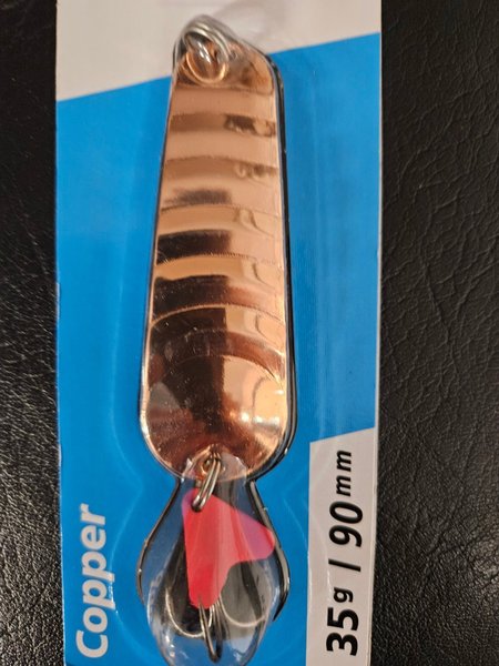 Skeddrag 90 mm 35 gram i koppar en bra färg för predatorfiske som gädda men även abborre, gös och ädelfiske funkar. Helt ny och delvis inplastad. Klipper till förpackningen för att gå i ett frimärke.
