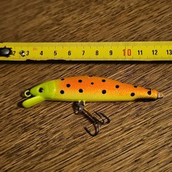 Fiskeagn med en längd av 75 mm och en vikt på 23 gram. Utrustad med en krok och en röd fjäder. Tillverkad i Sverige.