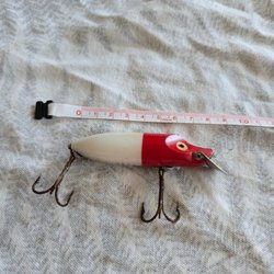 Fiskedrag från Heddon, modell King Stanley. Utrustad med en krok och en spinnare. Mått: ca 10 cm. Passar för fiskeentusiaster.