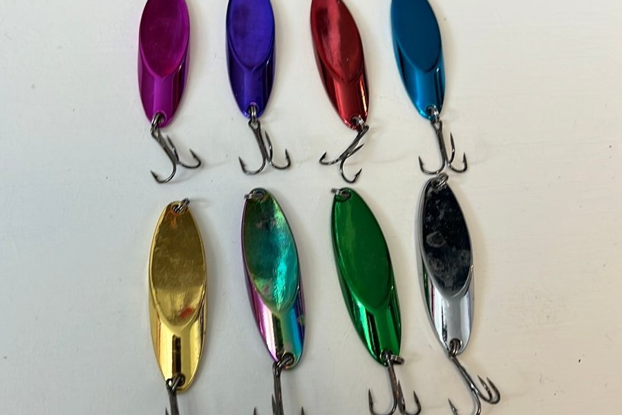 8 st fiskedrag i olika färgen,14 gram och passar till regnbåge, öring mm.