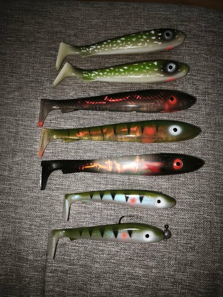 25 cm 3 st, 21cm 2 st, 17cm 2 st! 2 test riggade, aldrig vart i vattnet!