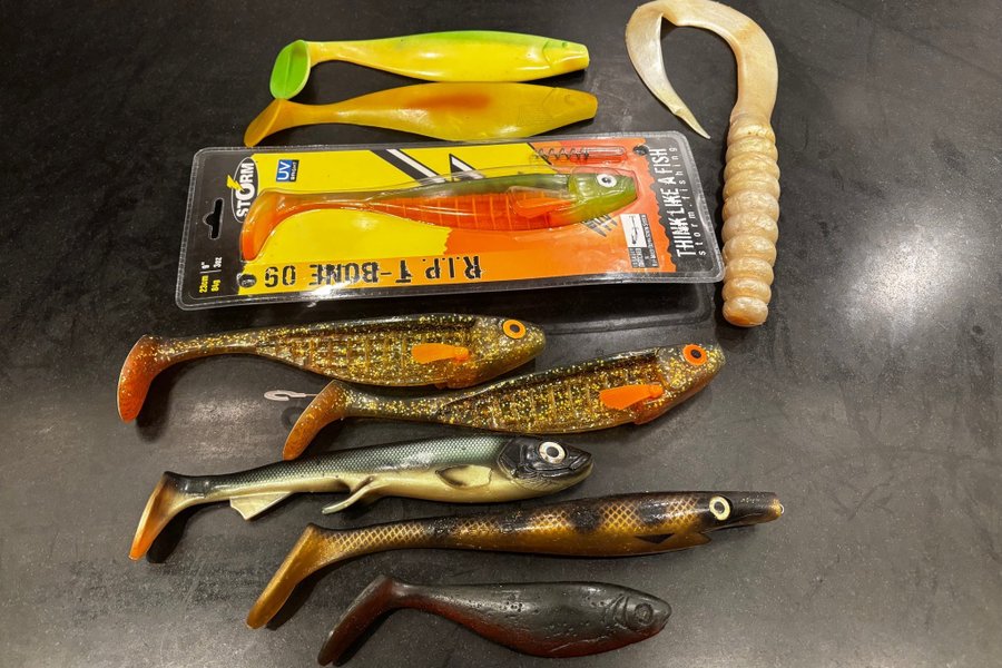 Ett gäng större gummibeten från Wolfcreek,CWC,Storm mfl,nya och ofiskade
