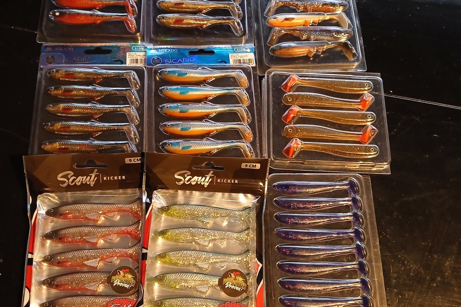 Set med flera olika jiggar i olika färger och modeller. Inkluderar drag från märken som Sicario och Scout Kicker.