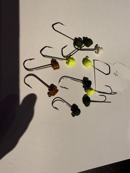 Jiggskallar runda, olika färger. Gula och vita Vikten ligger precis över 12 gram och krok storlekar 1/0-2/0