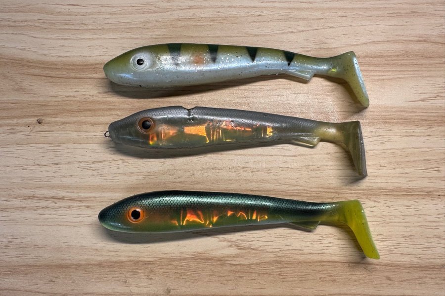 3st Svartzonker Mcrubber 21 cm. Alla har varit riggade och det finns bitmärken på dom. Men dom har mycket kvar att ge