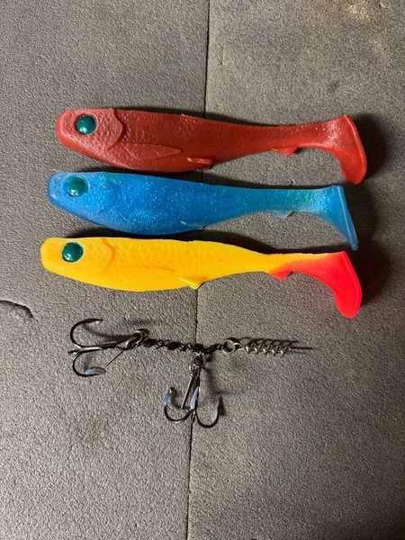 Jiggpaket för gäddfiske, 3 gummibeten inklusive stinger med krok i storlek 3/0.