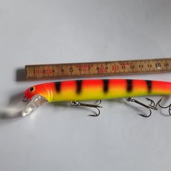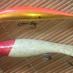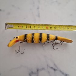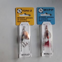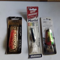 5 Små Wobbler i ask ca 2,4 g vadera. Man kan sätta ett 8 g sänke ca 15 cm framför dels för längre kast, vid vevstopp så sjunker Wobbler sakta och vid invevning stigande. Grymt roligt fiske på abborre. Nya i ask.
