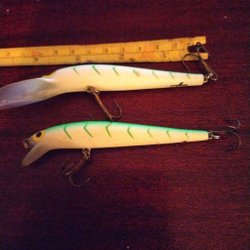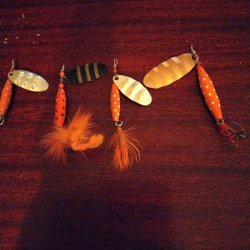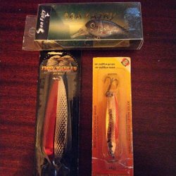 Denna fiskebait har en röd och vit färgsättning och är utrustad med tre krokar. Längden är cirka 10 cm. Passar för fiske i olika vatten.