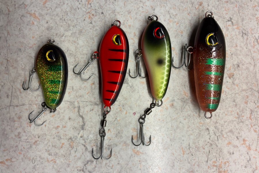 Set med fyra fiskedrag i olika färger och storlekar. Dragens design kan attrahera olika typer av fisk. Passar för både nybörjare och erfarna fiskare.
