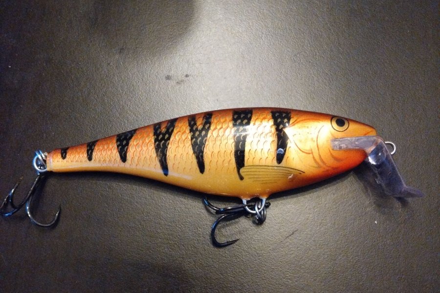Rapala super shad rap 45 gram 14 cm färg BRP. För spinn trolling efter gädda och gös. Bra skick med nya krokar monterade.