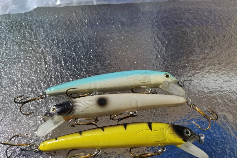 2 st Wobblers Blå/Vit+Vit /Svart 16grams och ca 13 cm längd. Flytande. Mycket bra gång.
