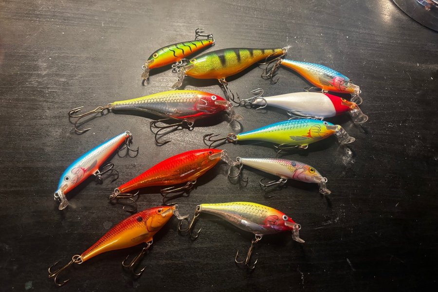Rapala Countdown i blandade storlekar,och i fina färger,skicket är superbra då de inte fått simma vad jag kommer ihåg:)