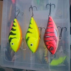 Set med flera Rapala Flat Rap beten. Varje bete har specifika egenskaper för fiske. Passar för olika typer av fiske och vattenförhållanden. Se bilder för detaljer om varje bete.